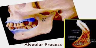 The alveolar process is the portion of the jawbone that contains the teeth and the alveoli in which they are suspended. The alveolar process rests on basal bone. Proper development of the alveolar process is dependent on tooth eruption and its maintenance on tooth retention. The alveolar process is the thickened ridge of bone that contains the tooth sockets (dental alveoli) on the jaw bones that hold teeth. In humans, the tooth-bearing bones are the maxilla and the mandible. The curved part of each alveolar process on the jaw is called the alveolar arch.